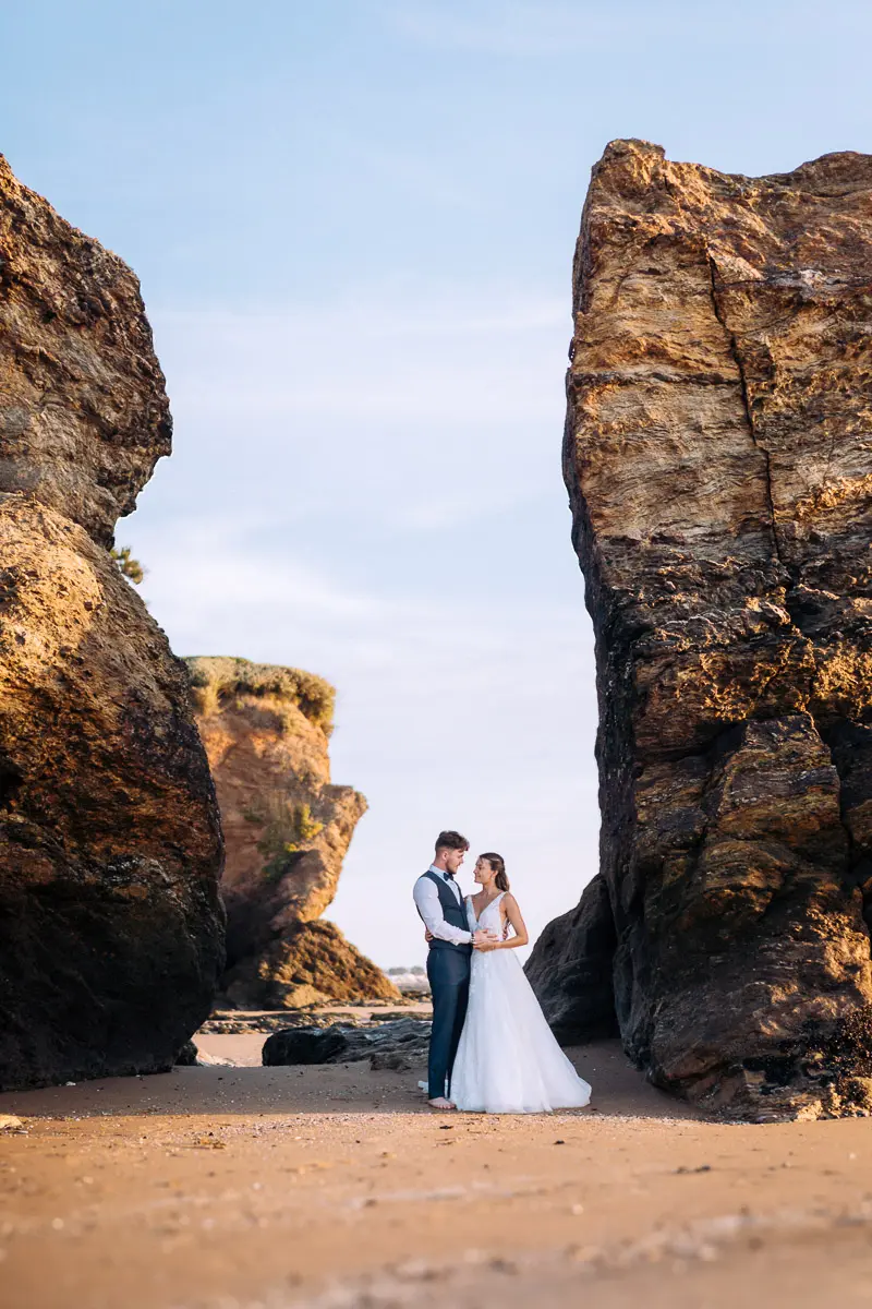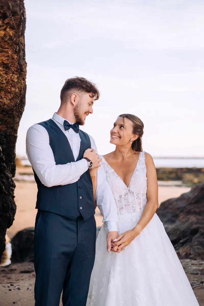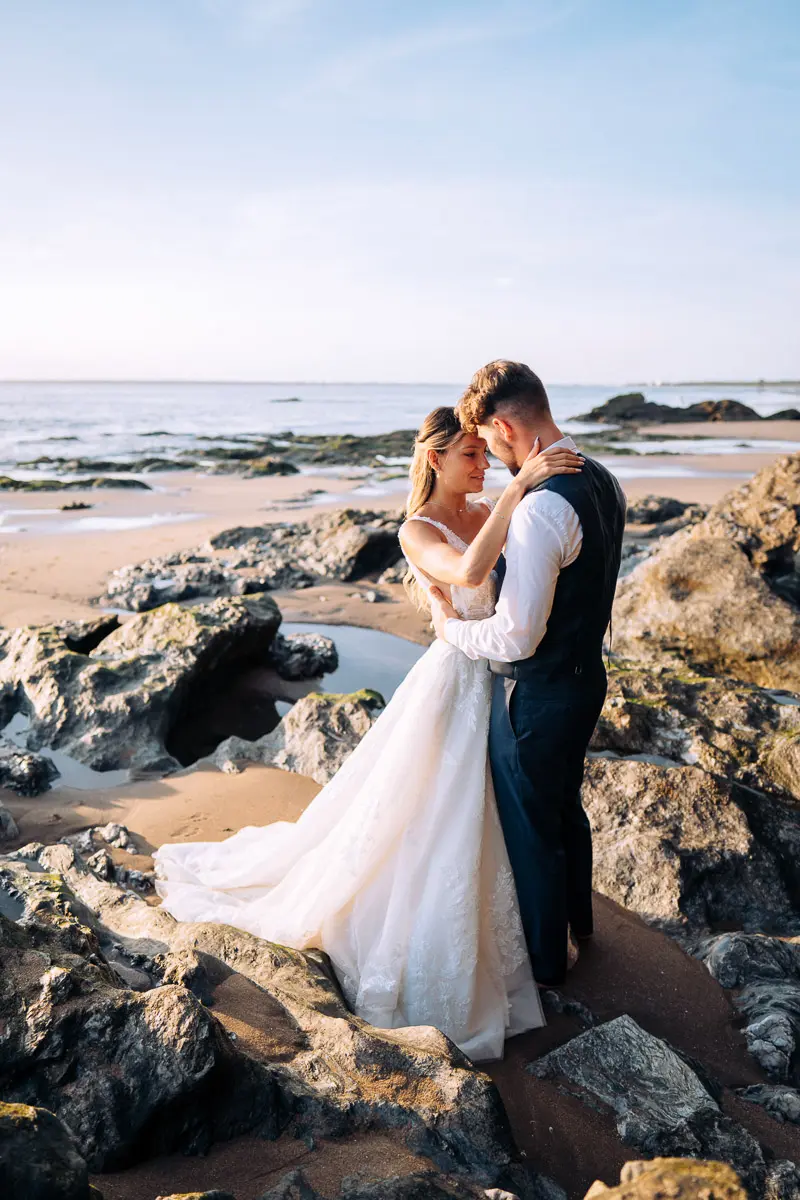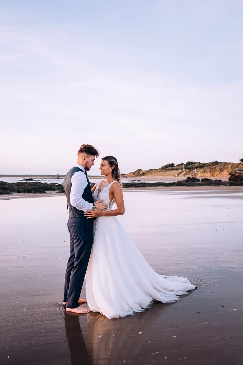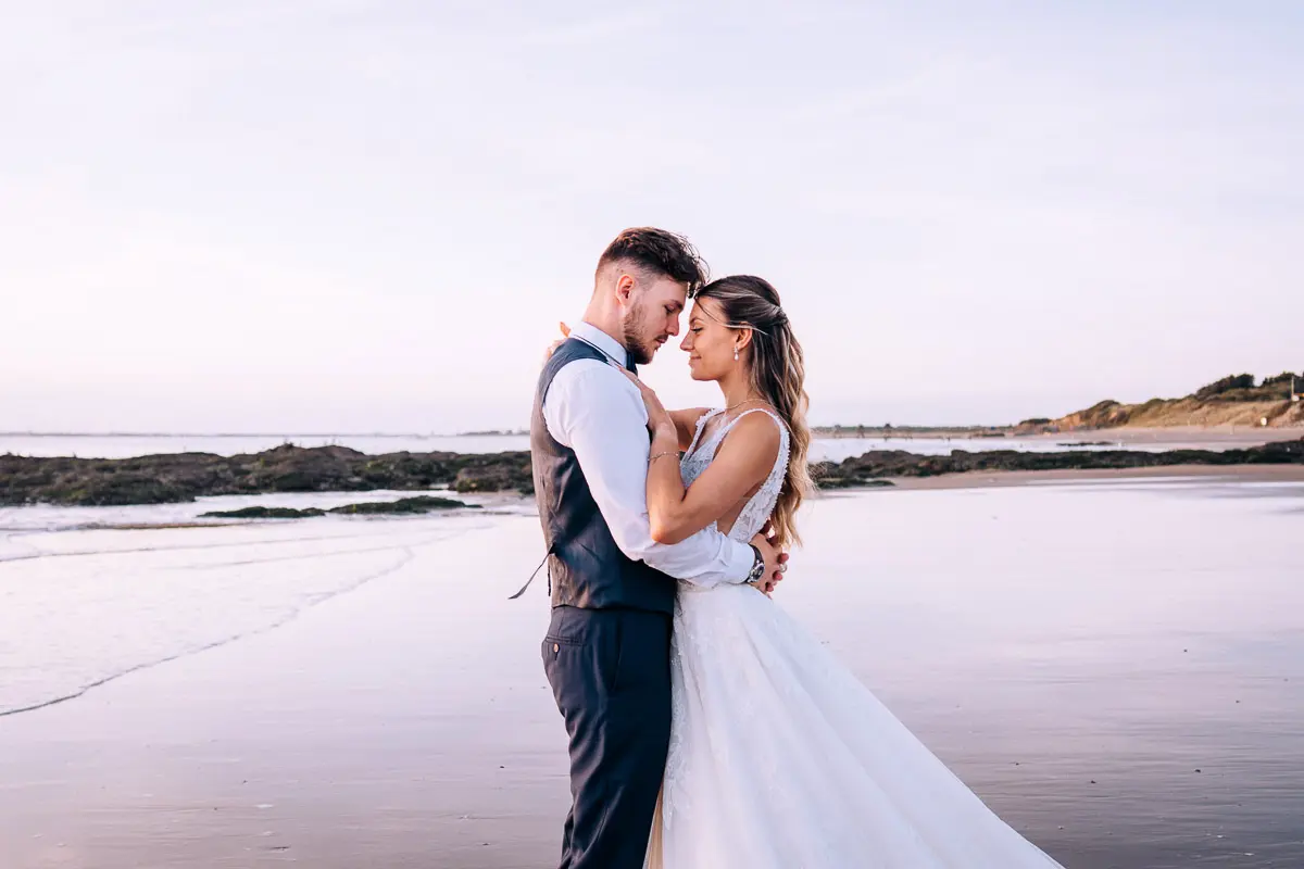 Un coucher de soleil à Pornic, un cadre idyllique en bord de mer et un jeune couple plein de complicité : cette séance photo couple à Pornic était tout simplement parfaite. Arrivés avant le coucher du soleil et repartis après les dernières lueurs, nous avons capturé des moments intimes et naturels, baignés d’une lumière douce et dorée, idéale pour des photos de couple. Découvrez ci‑dessous quelques‑uns des clichés qui racontent cette belle histoire d’amour à Pornic, en Loire‑Atlantique.