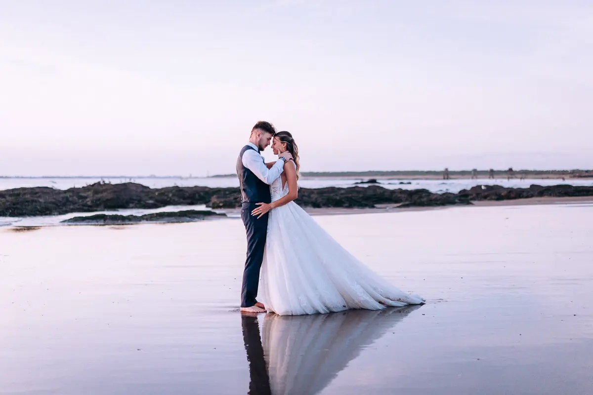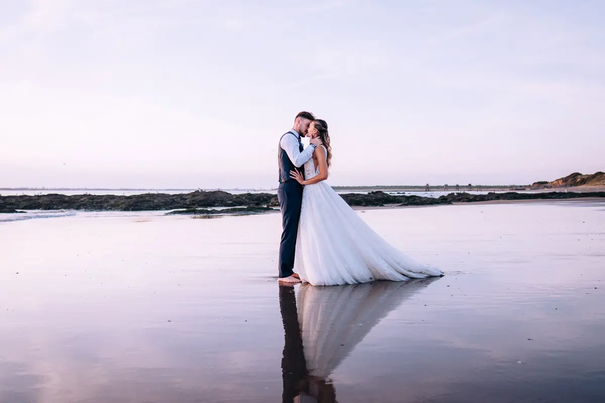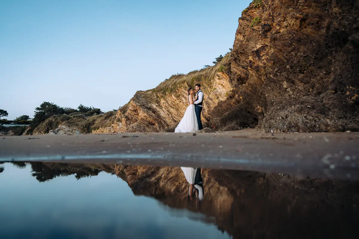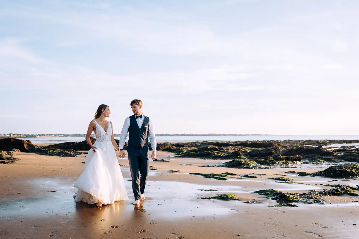 Un coucher de soleil à Pornic, un cadre idyllique en bord de mer et un jeune couple plein de complicité : cette séance photo couple à Pornic était tout simplement parfaite. Arrivés avant le coucher du soleil et repartis après les dernières lueurs, nous avons capturé des moments intimes et naturels, baignés d’une lumière douce et dorée, idéale pour des photos de couple. Découvrez ci‑dessous quelques‑uns des clichés qui racontent cette belle histoire d’amour à Pornic, en Loire‑Atlantique.