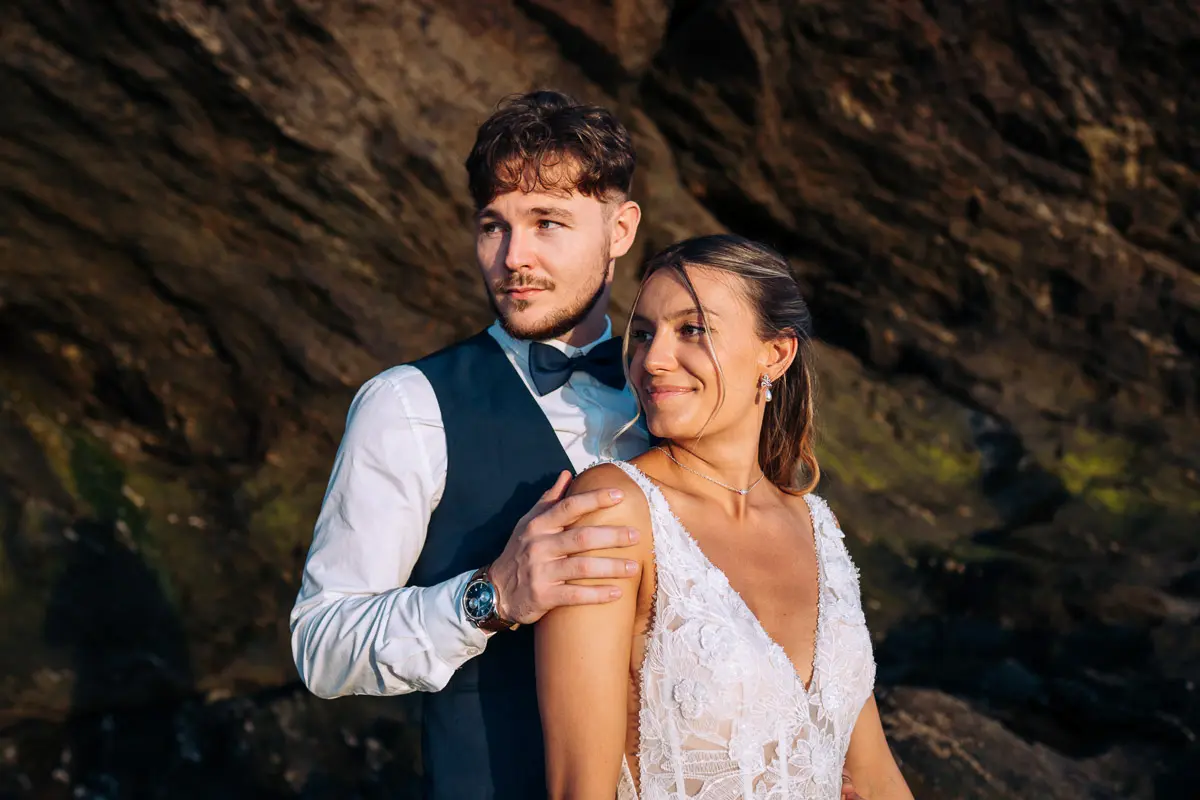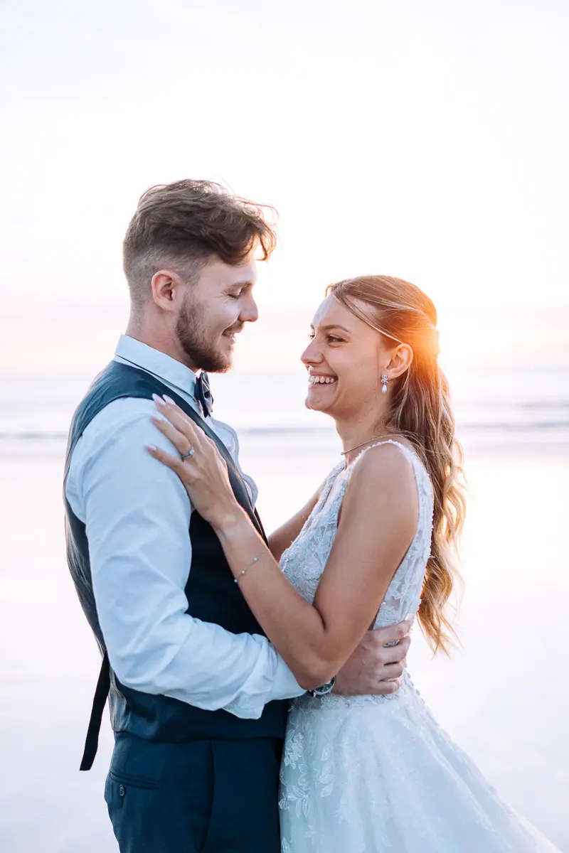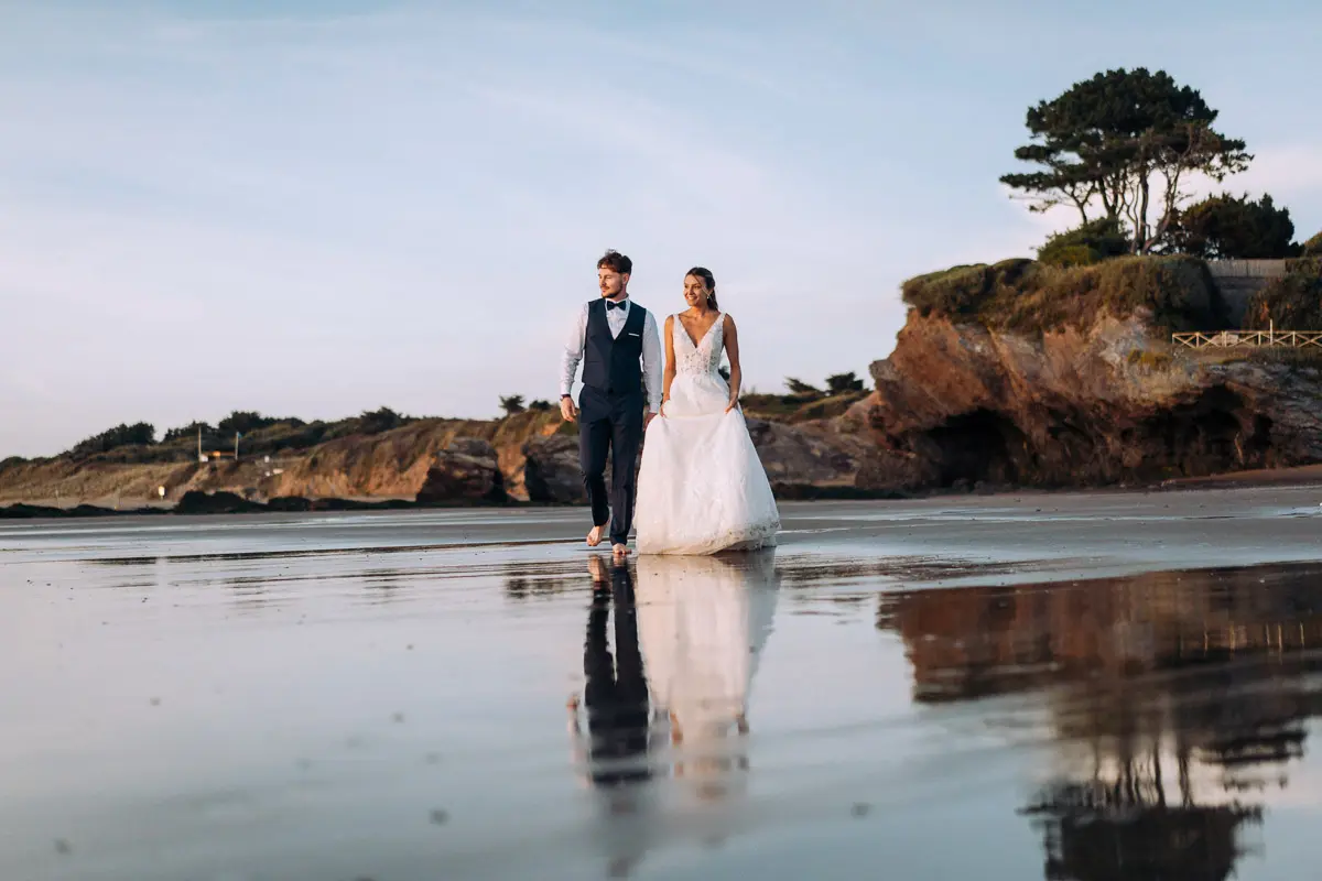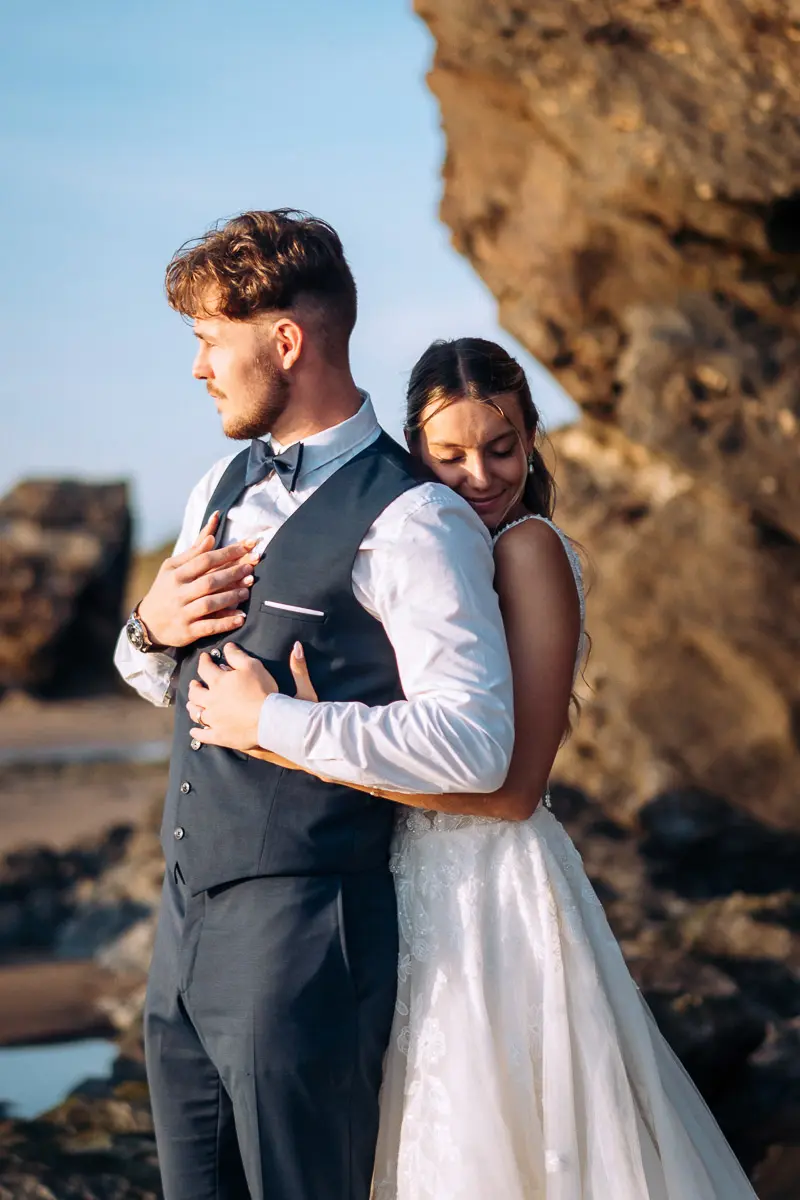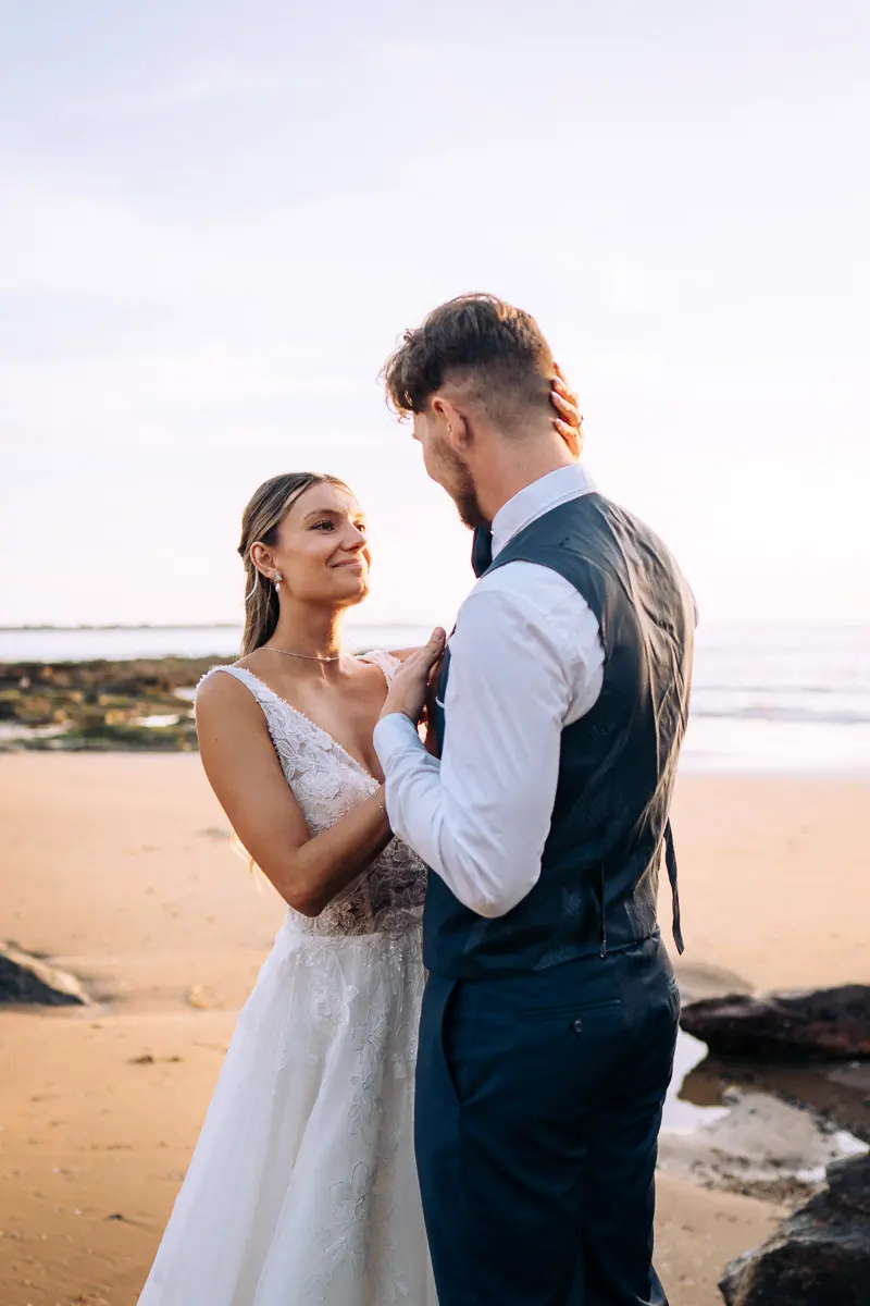 Un coucher de soleil à Pornic, un cadre idyllique en bord de mer et un jeune couple plein de complicité : cette séance photo couple à Pornic était tout simplement parfaite. Arrivés avant le coucher du soleil et repartis après les dernières lueurs, nous avons capturé des moments intimes et naturels, baignés d’une lumière douce et dorée, idéale pour des photos de couple. Découvrez ci‑dessous quelques‑uns des clichés qui racontent cette belle histoire d’amour à Pornic, en Loire‑Atlantique.