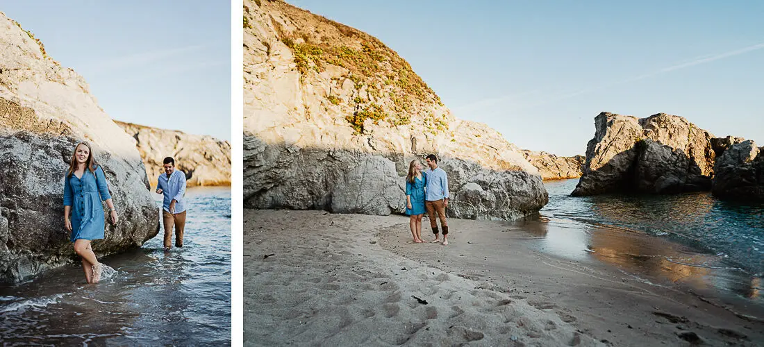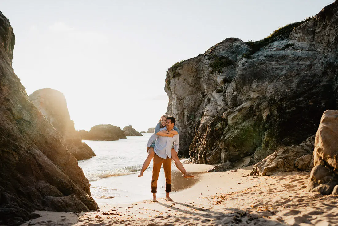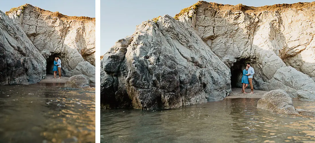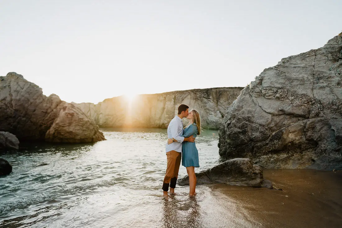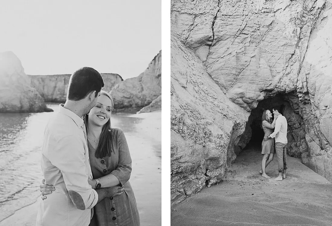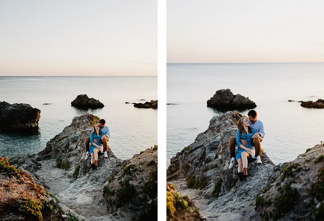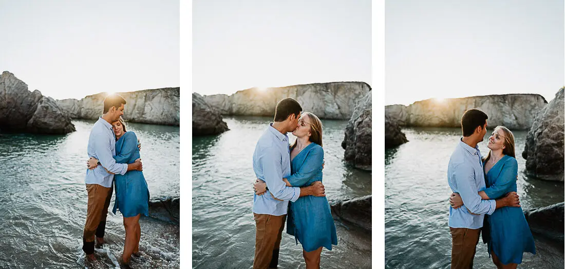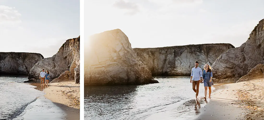 Séance photo couple entre La Baule et Le Pouliguen, au coucher du soleil, pour des images naturelles, lumineuses et pleines de complicité en bord de mer. Ce jeune couple de Nantes a été photographié dans un cadre idyllique entre plage, rochers et lumière dorée, idéal pour une séance photo couple romantique sur la côte atlantique.