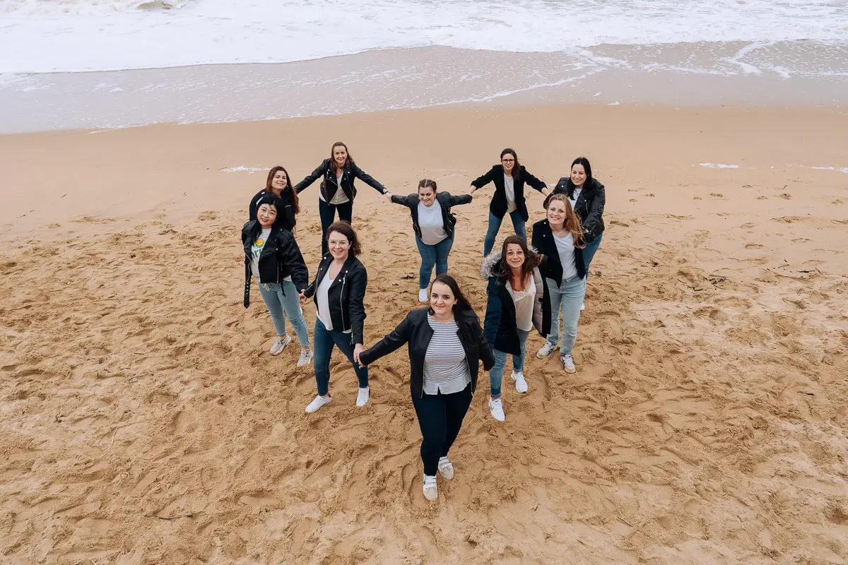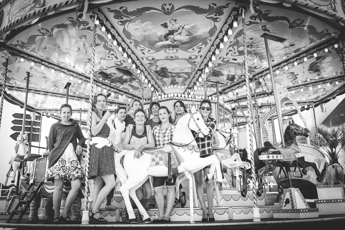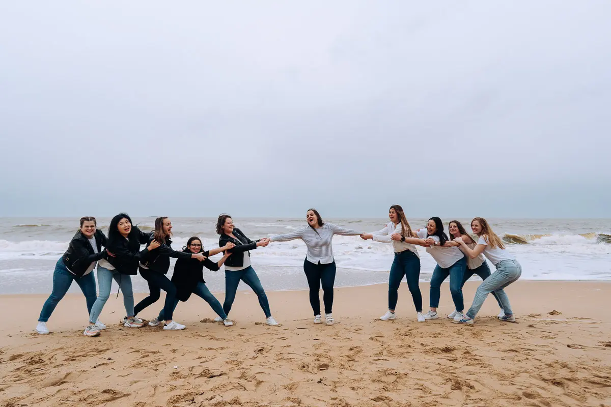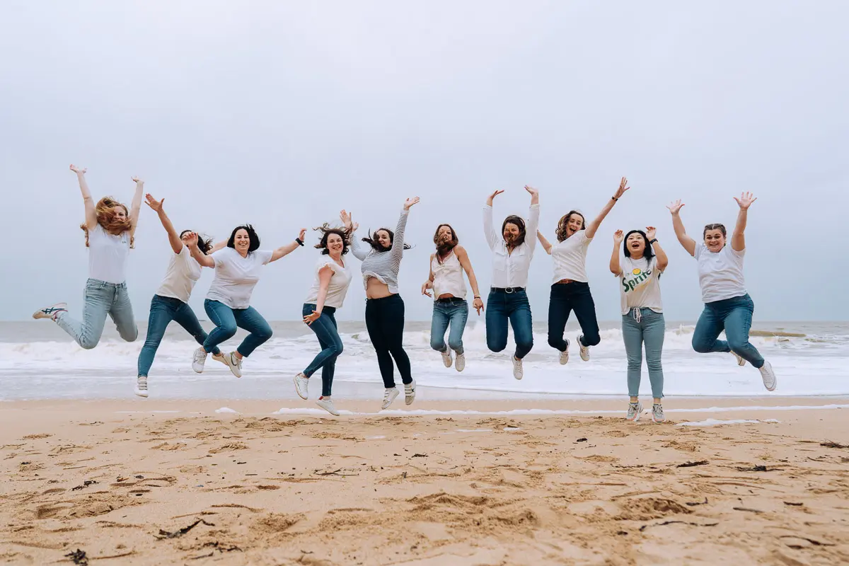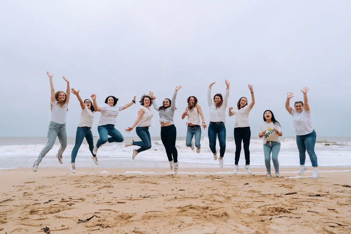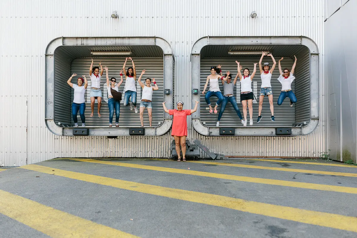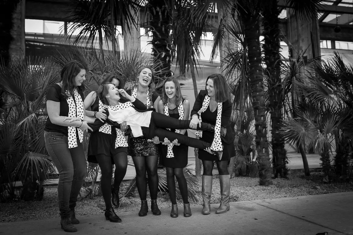 Aucun souci ! Même si vous vous pensez "pas photogéniques", un photographe EVJF professionnel sait vous guider, vous mettre à l'aise et proposer des poses simples et naturelles qui vous mettent en valeur. L'ambiance de groupe, les rires entre copines et le mouvement aident naturellement à oublier l'appareil photo pour obtenir des images spontanées et authentiques. Je vous donne des petites instructions tout au long de la séance (où vous mettre, comment bouger, quoi faire avec vos mains...) pour que tout se passe en douceur. Le résultat : des photos naturelles où vous êtes radieuses !