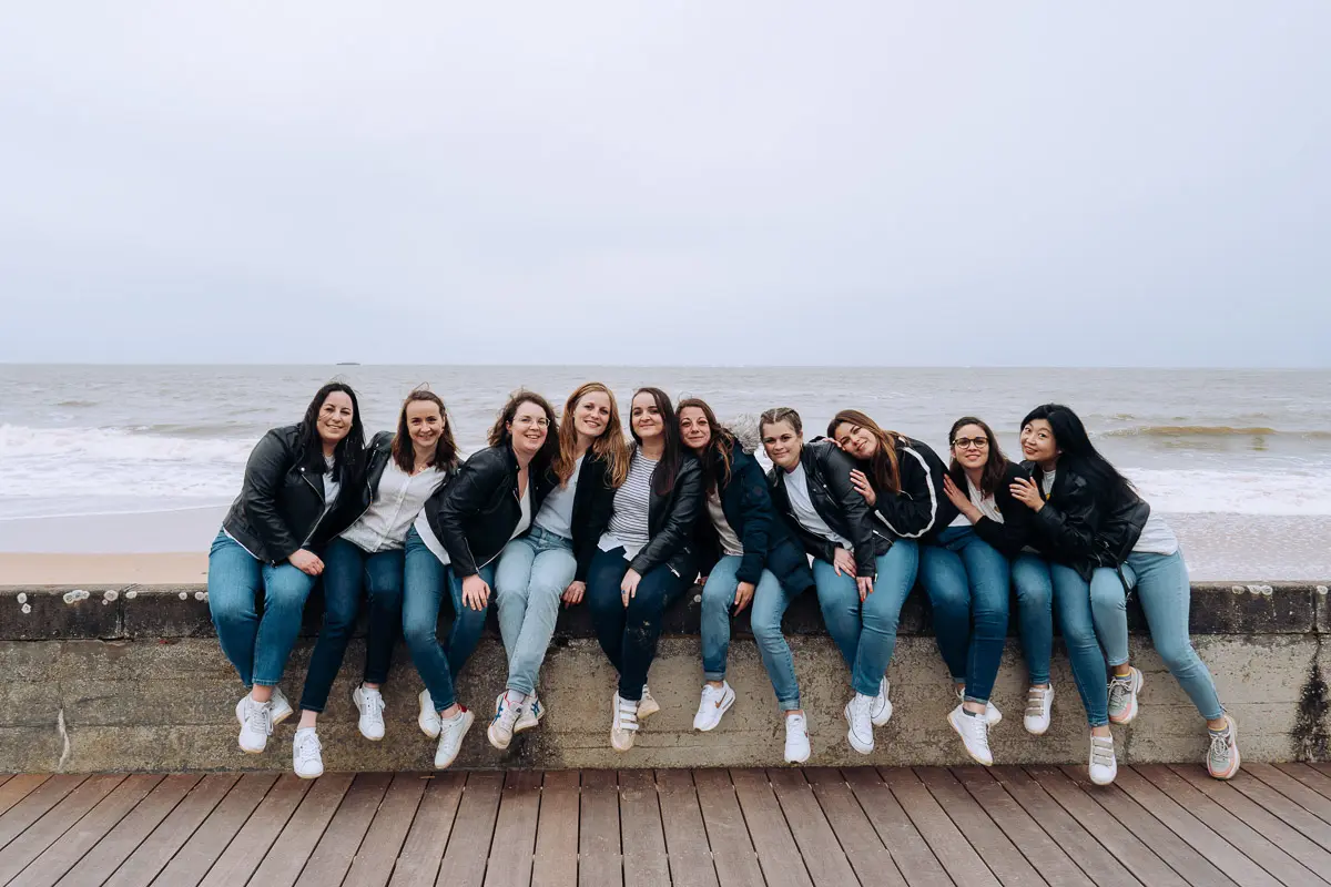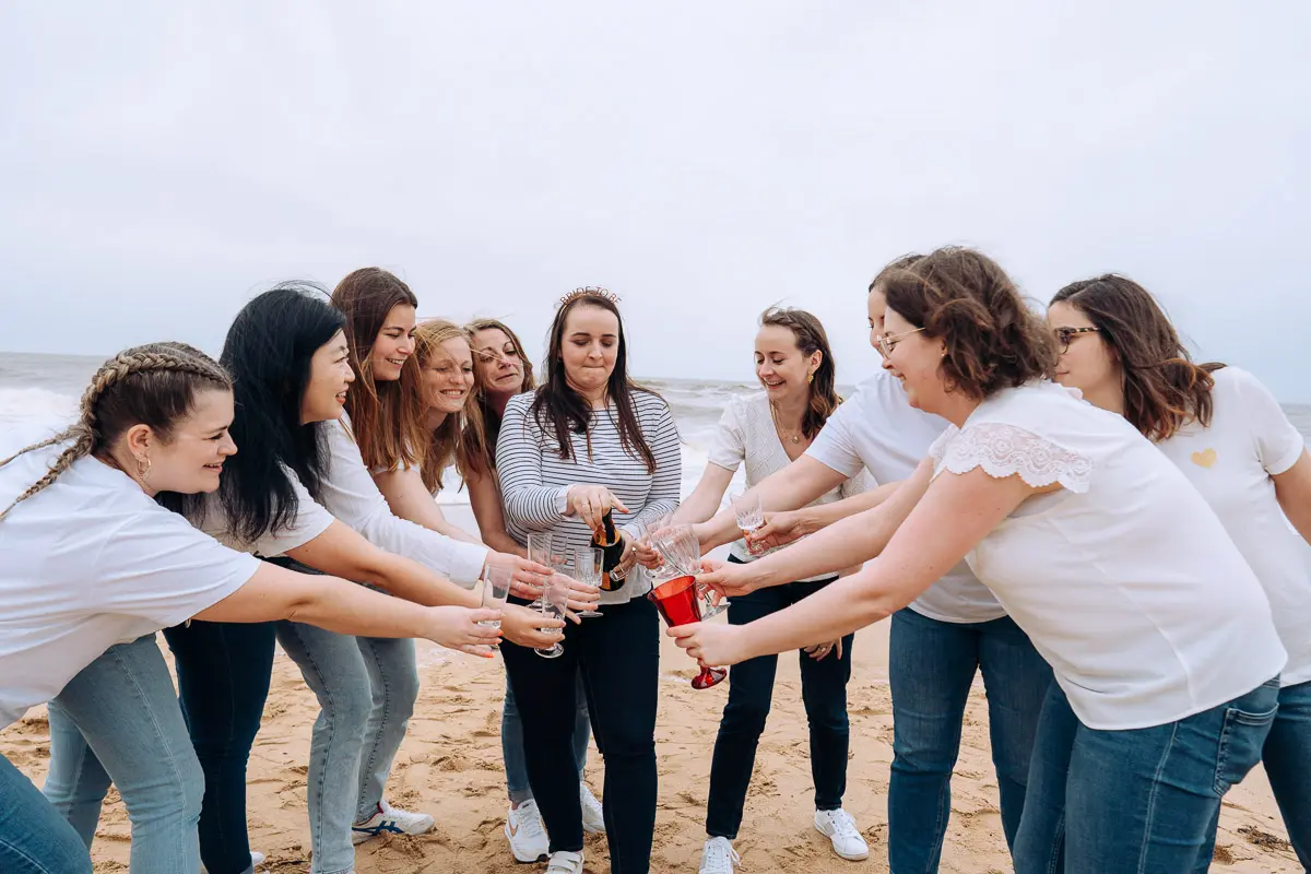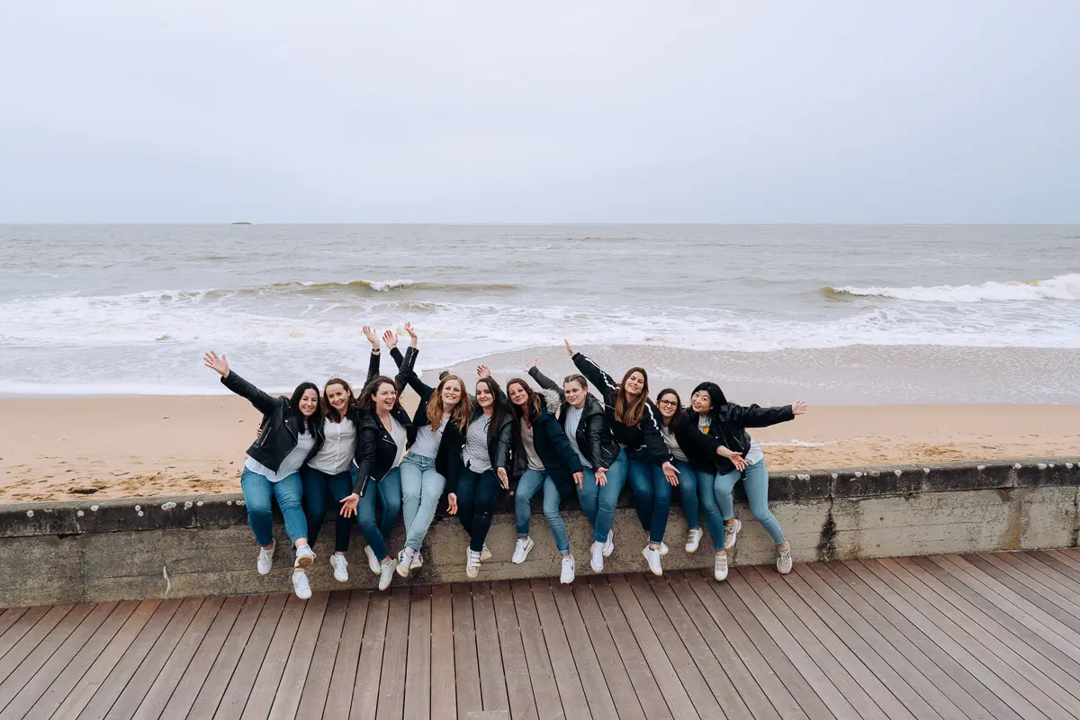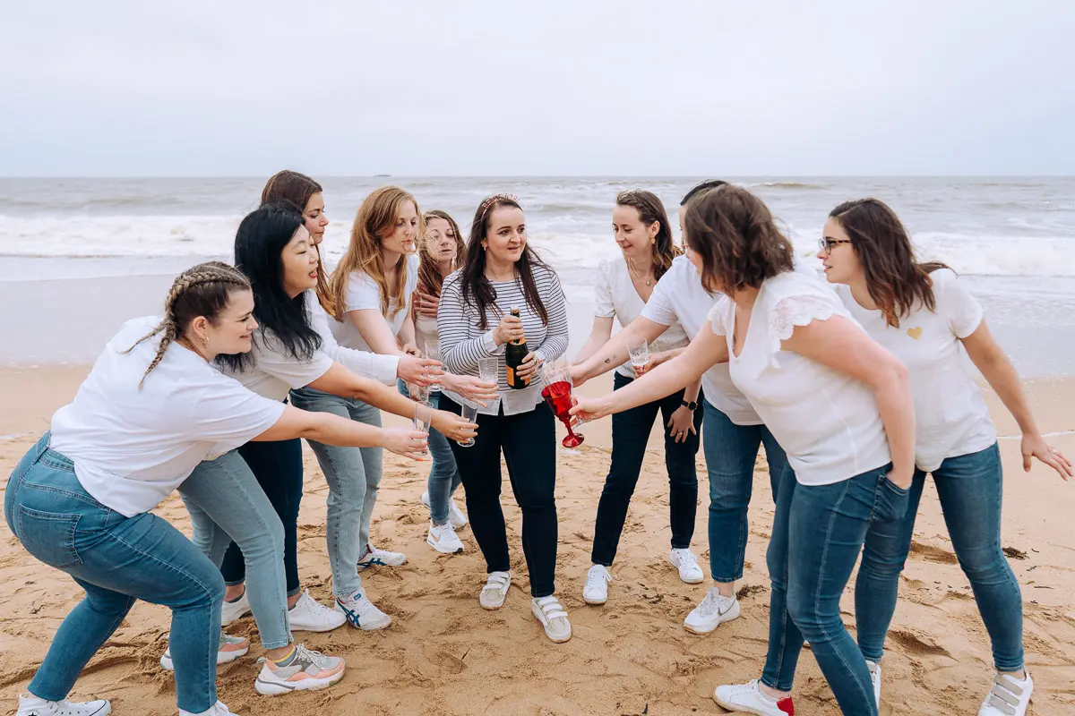 Il n'y a pas de limite stricte au nombre de participantes pour une séance photo EVJF ! Le tarif standard de 300€ convient parfaitement pour des groupes de 4 à 10 personnes. Pour des groupes plus importants (10-15 personnes ou plus), nous pouvons prévoir une séance un peu plus longue (1h30-2h) pour avoir le temps de faire toutes les combinaisons de photos de groupe et les portraits individuels. N'hésitez pas à me contacter pour discuter de votre projet si vous êtes nombreuses !