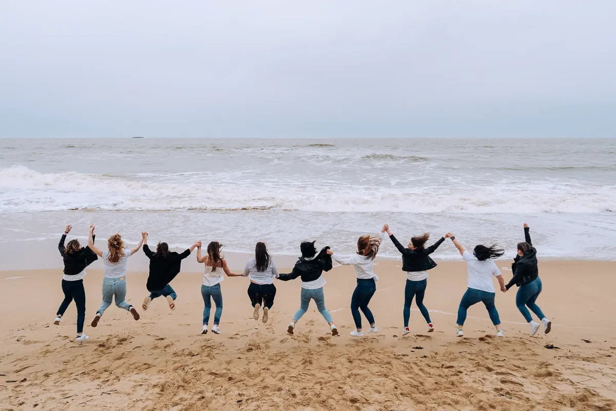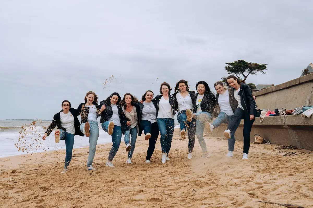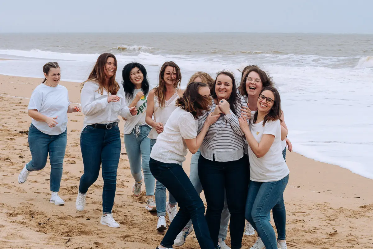 En tant que photographe EVJF à Nantes, je vous accompagne pour créer des souvenirs inoubliables de votre week-end entre copines. Que ce soit à la plage (La Baule, Pornic), en ville (Nantes, Guérande) ou en pleine nature, votre shooting photo d'enterrement de vie de jeune fille devient une activité originale, fun et mémorable.