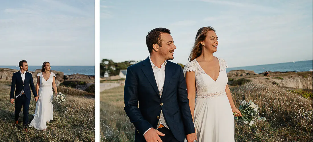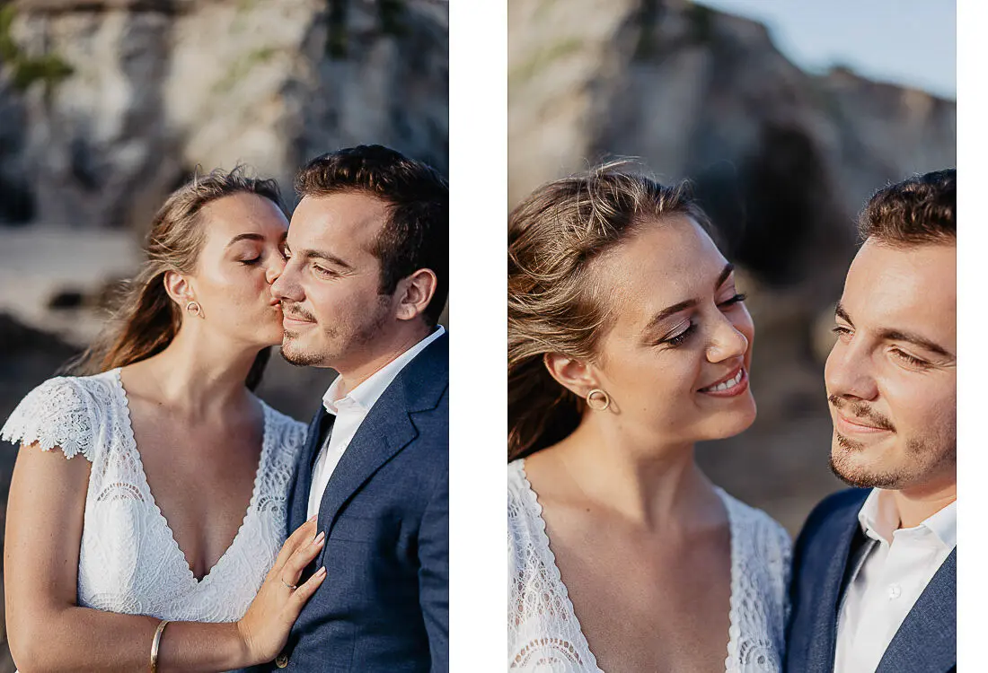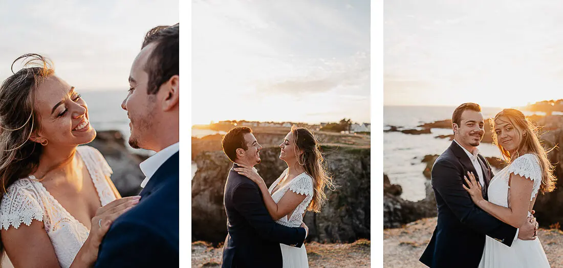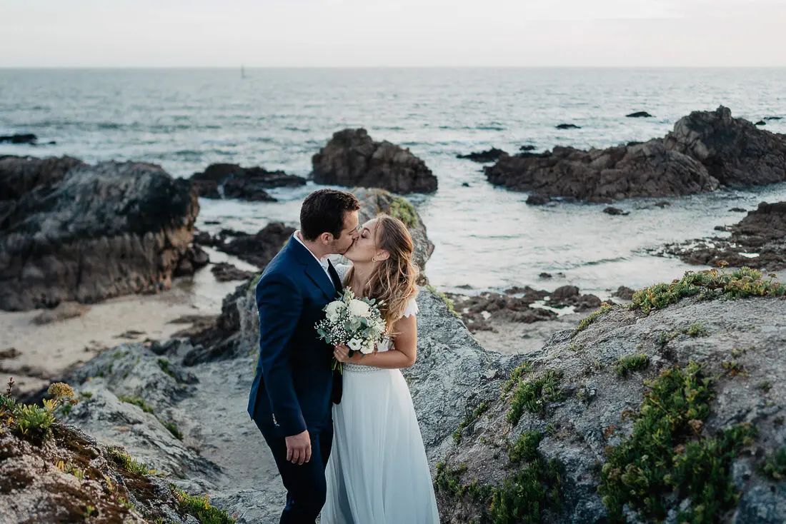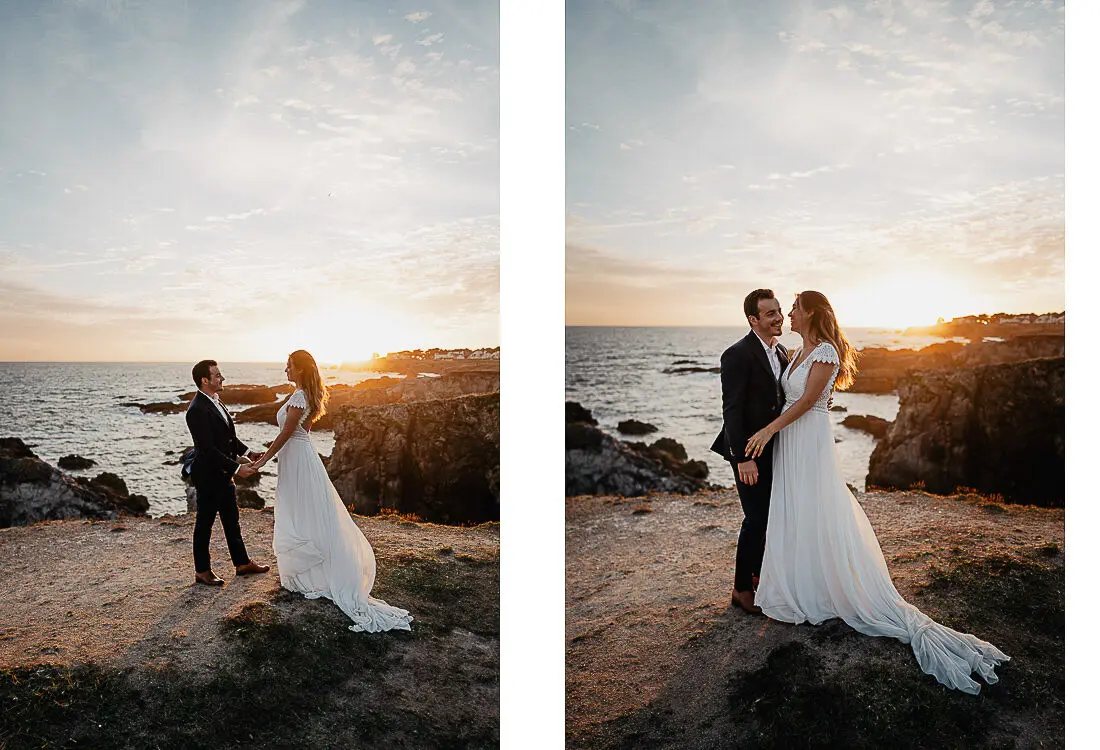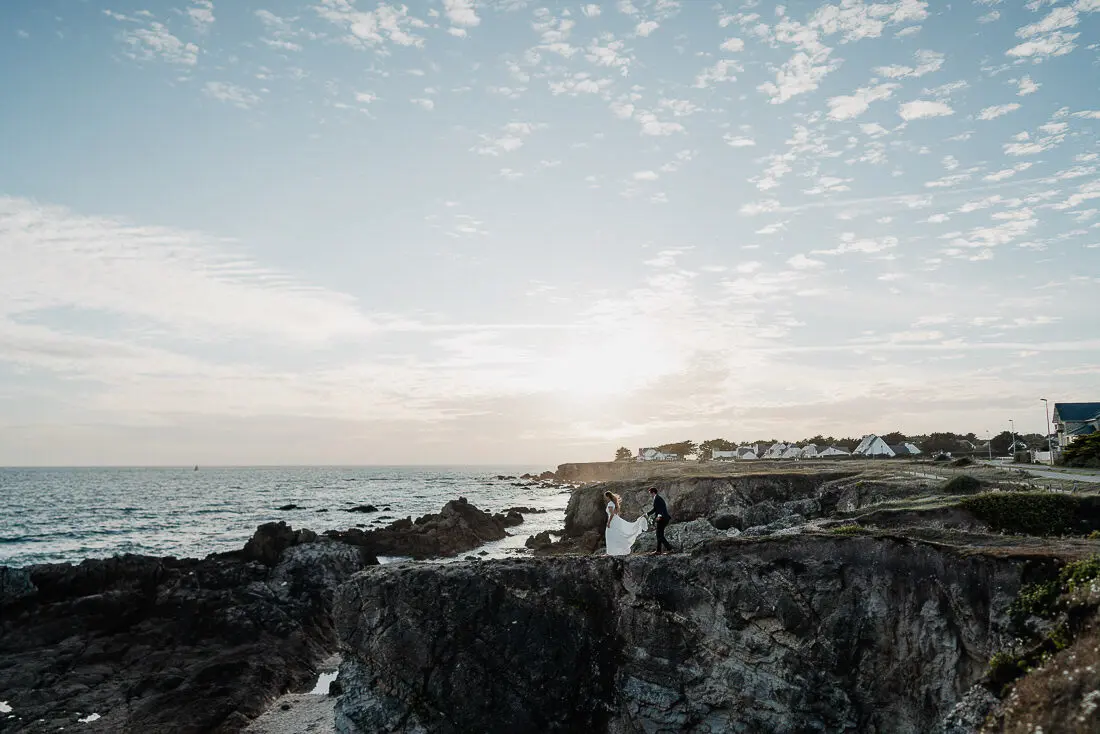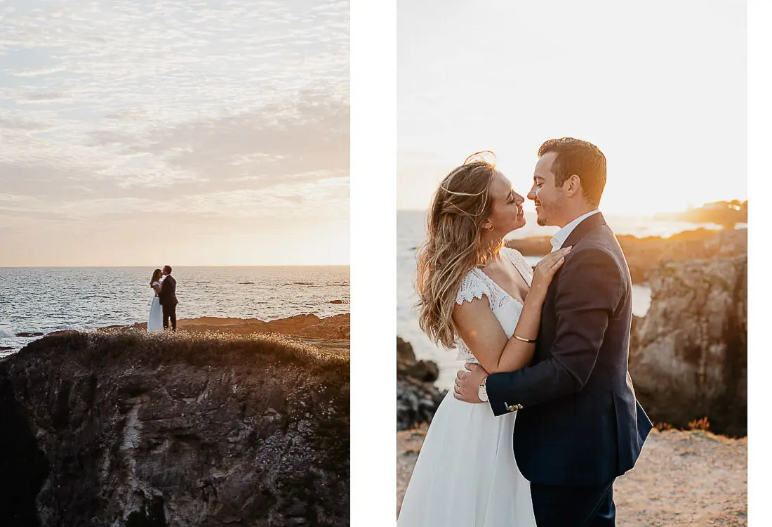 Un coucher de soleil magique entre La Baule et Le Pouliguen, un cadre idyllique en bord de mer et un jeune couple plein de complicité : cette séance photo couple était tout simplement parfaite. Arrivés avant le coucher du soleil et repartis après les dernières lueurs, nous avons capturé des moments intimes et naturels, baignés d’une lumière douce et envoûtante, idéale pour un shooting photo à La Baule – Le Pouliguen. Découvrez ci‑dessous quelques‑uns des clichés qui racontent cette belle histoire d’amour sur la côte atlantique, en Loire‑Atlantique.